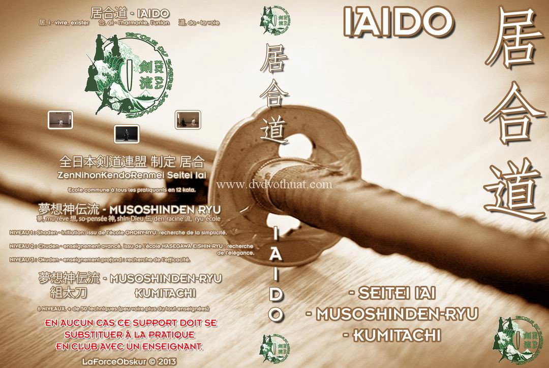 Trong khuôn khổ 1 DVD đặc biệt này chúng ta sẽ được hướng dẫn tập luyện lần lượt 3 hệ thống kiếm thuật của Nhật Bản là: Seitei Iai, Musoshinden Ryu, Kumitachi với những Sensei người Pháp đầy tâm huyết. Đây DVD ngắn gọn nhưng bao hàm những kiến thức hữu ích và súc tích. Đây sẽ là tài liệu mà các bạn yêu thích võ thuật Nhật Bản không nên bỏ qua.