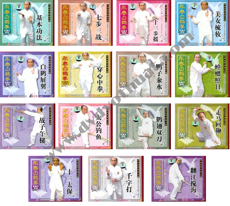 Một số nguồn cho rằng người sáng lập ra bộ môn này chính là Ngũ Mai Lão Ni sư phụ của Nghiêm Vĩnh Xuân, nên dù là 2 môn khác biệt nhưng cũng có nhiều nét tương đồng, Bạch Hạc Quyền Phúc Kiến là môn võ có nền tảng phần lớn từ Thiếu Lâm Tung Sơn. (Nguồn Wikimedia). Bộ DVD bao gồm trọn bộ 18 volumes. (trong đó có 3 hạng mục có 2 tập)